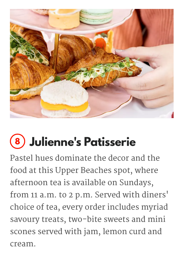 Take a step away from the normal hustle and bustle of Toronto life and enjoy a delightful assortment of savoury finger sandwiches, pastries and our signature mini scones.